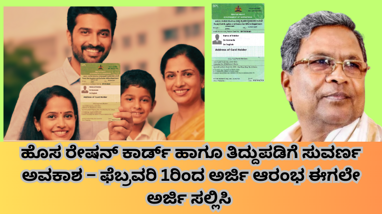 ಹೊಸ ರೇಷನ್ ಕಾರ್ಡ್ ಹಾಗೂ ತಿದ್ದುಪಡಿಗೆ ಸುವರ್ಣ ಅವಕಾಶ – ಫೆಬ್ರವರಿ 1ರಿಂದ ಅರ್ಜಿ ಆರಂಭ Karnataka Ration Card Update 2026:ಕರ್ನಾಟಕದ ನಾಗರಿಕರಿಗೆ ಆಹಾರ ಮತ್ತು …